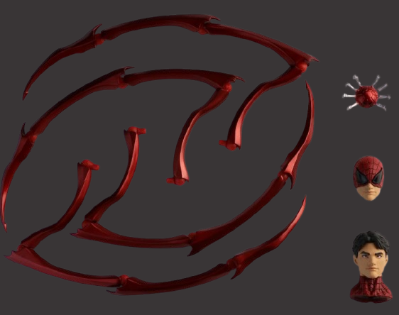 - 6 pairs of interchangeable hands (fists, web-shooting, wall-crawling)