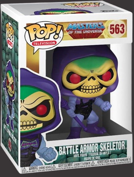 The #563 Battle Armor Skeletor Funko Pop is pure evil in collectible form, gleaming with menace and mischief. Instead of his usual bare chest, Skeletor is rocking his fearsome battle armor – shiny, detailed, and ready to absorb (or deflect) every heroic strike He-Man dares throw his way. His iconic skull face grins wickedly, glowing with that sinister yellow-green hue, while his eyes burn with villainous intent. In one hand, he grips his infamous Havoc Staff topped with a ram’s skull, radiating dark magical energy.