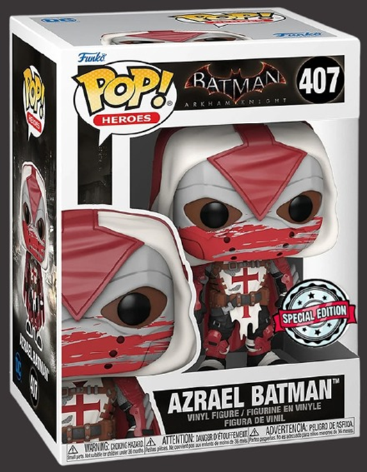 The Azrael Batman Funko Pop! #407 (Arkham Knight – Special Edition) looks like a holy knight who’s had one too many battles and is still charging forward. 🩸⚔️