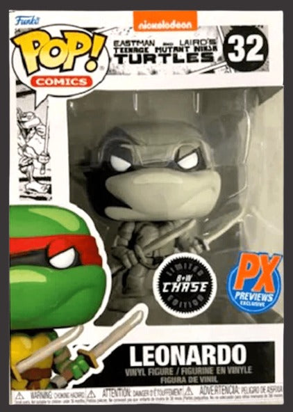 Sharpen your katanas and your collector instincts—because the Teenage Mutant Ninja Turtles: #32 Leonardo PX Previews [B&W – Chase Variant] Funko Pop! is slicing through with stoic style and gritty comic book roots!